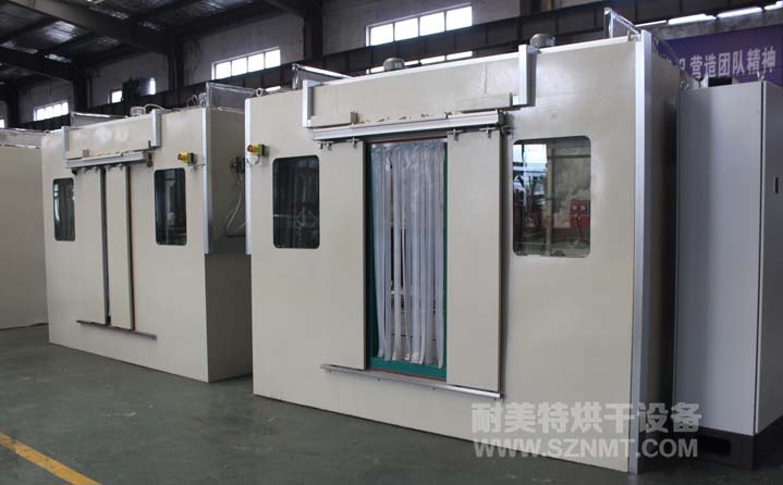 1,物流人員在加熱箱后面把料車推到加熱房里,關(guān)上卷簾門開(kāi)始加熱。
